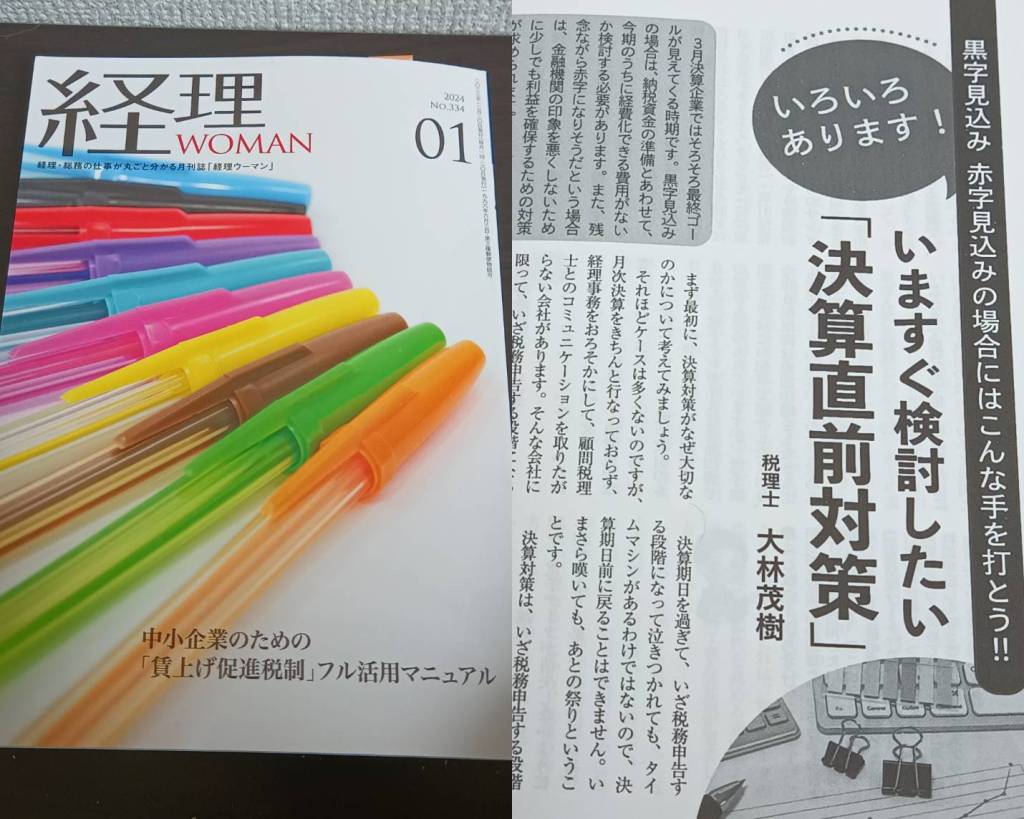 月刊経理WOMANに決算直前対策について,寄稿しました。