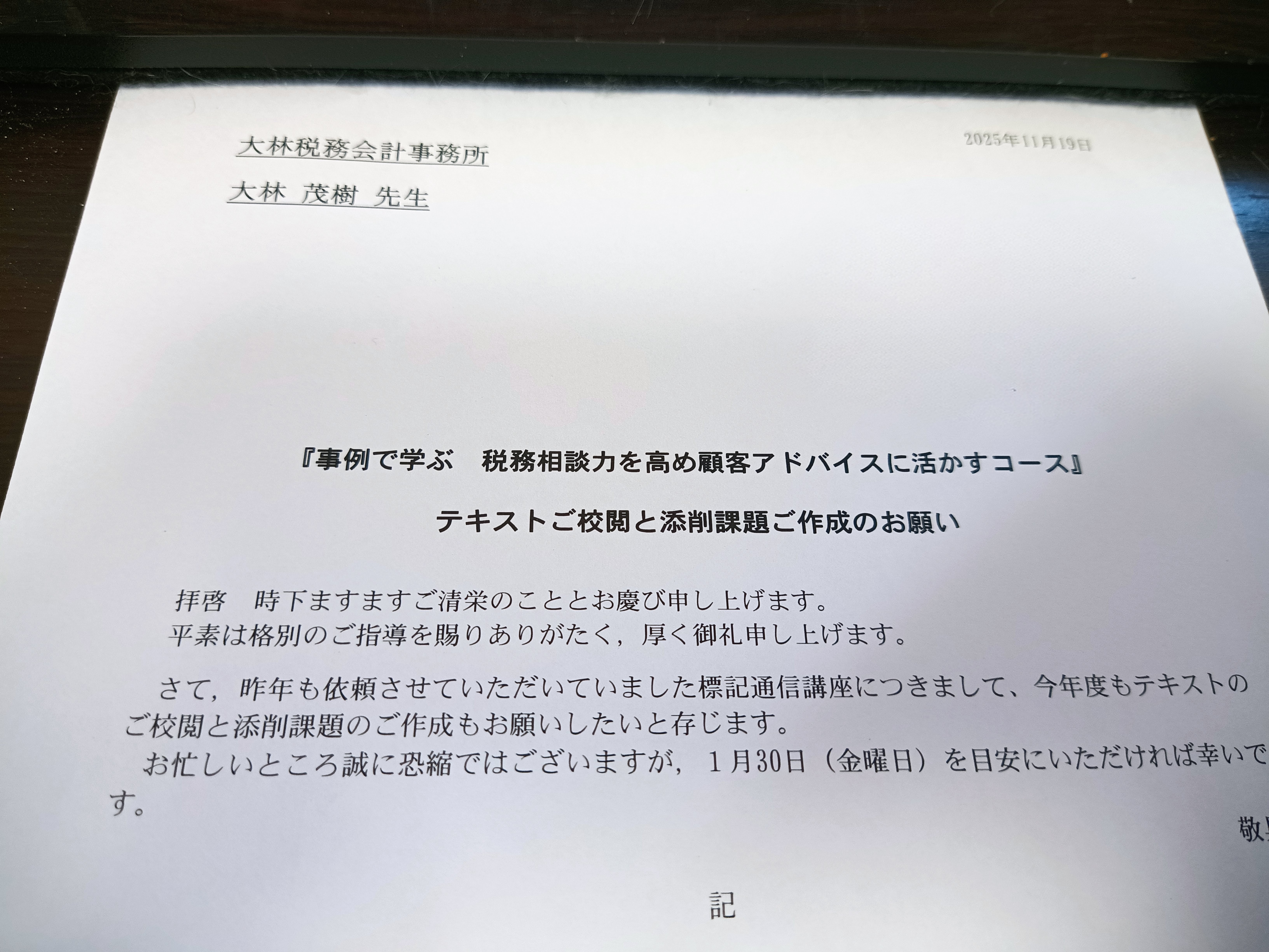 今年度も通信添削講座の執筆依頼を頂戴しました